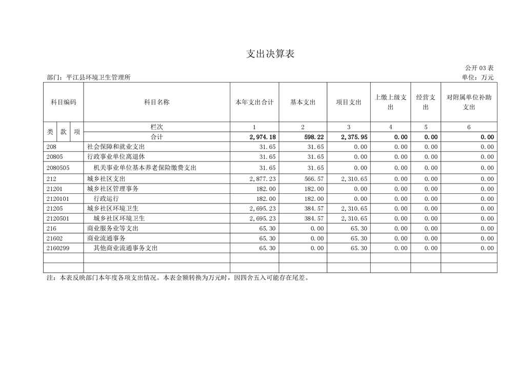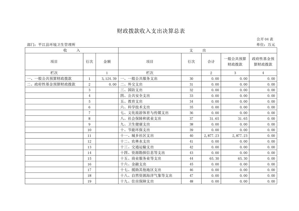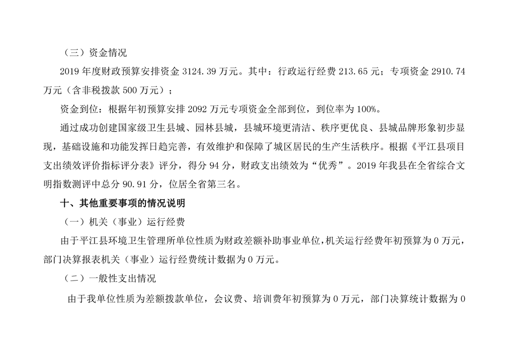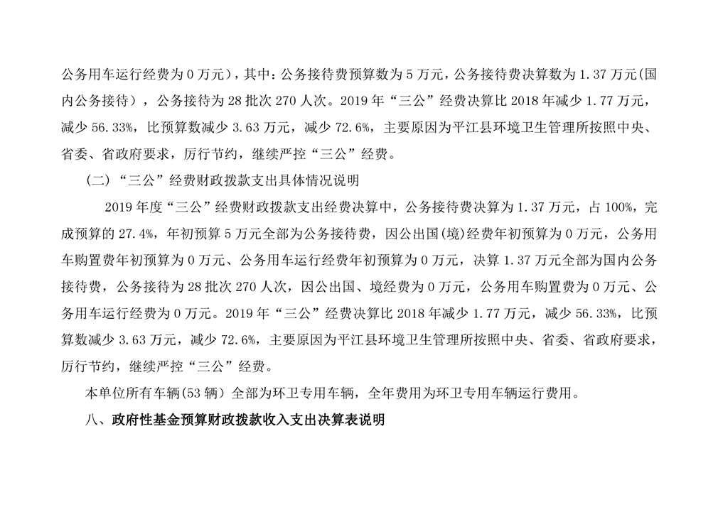 平江县环境卫生管理所2019年度部门决算