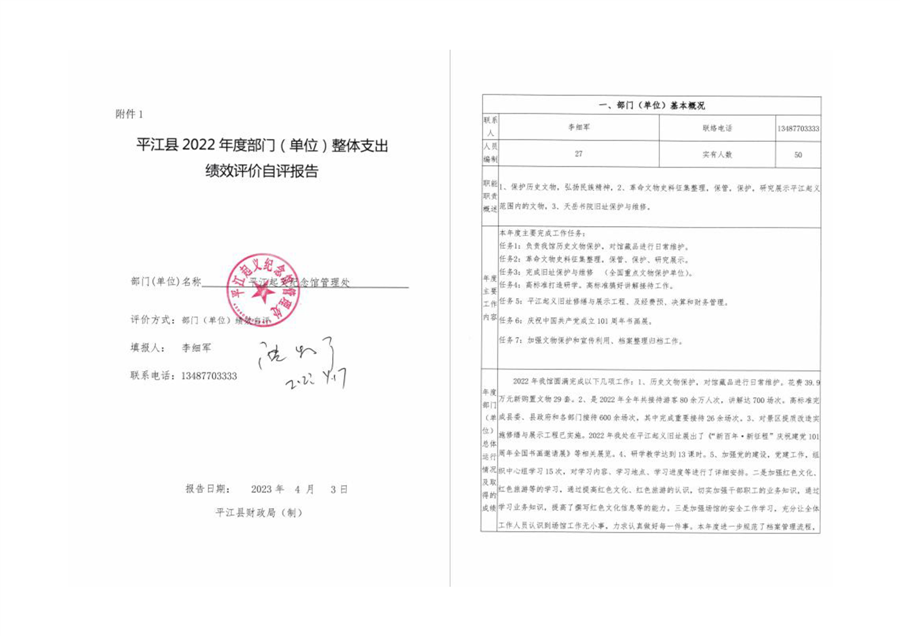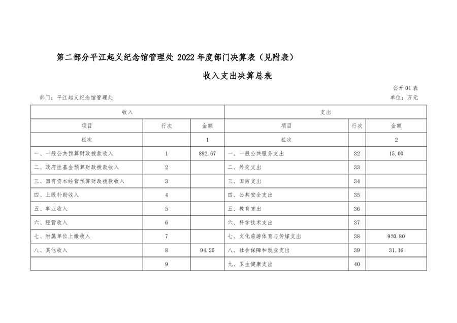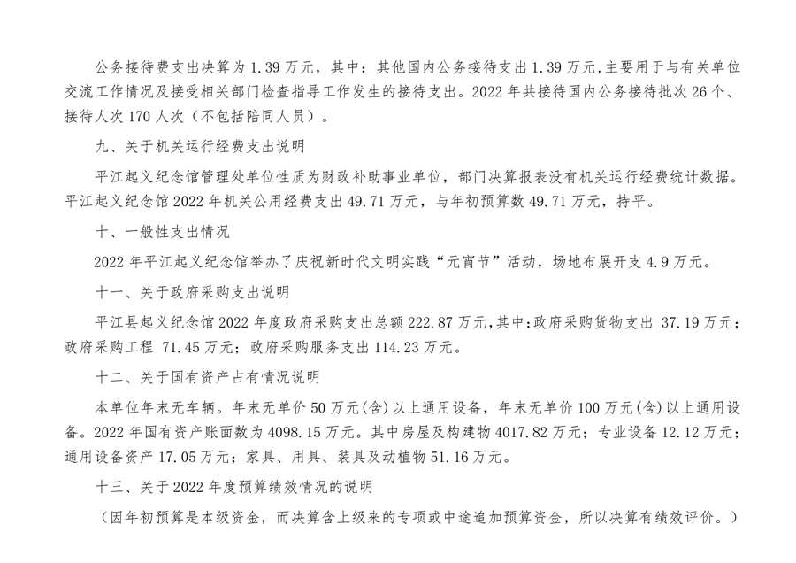 平江起义纪念馆2022年部门决算