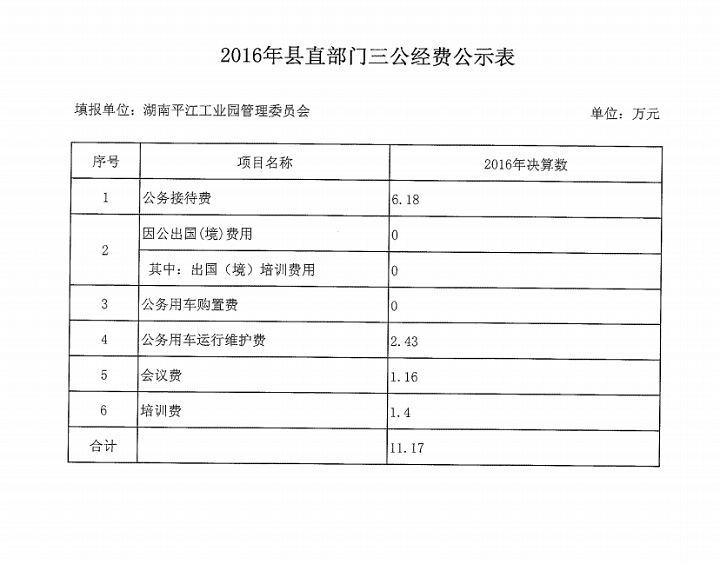 平江高新区2016年度三公经费公示