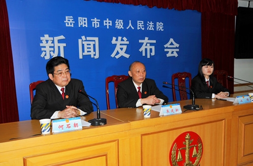 岳阳中院新闻发言人何石朝、民事审判第三庭庭长石峰、行政审判庭庭长吴建新及部分法官出席发布会并分别介绍有关情况,回答记者提问。