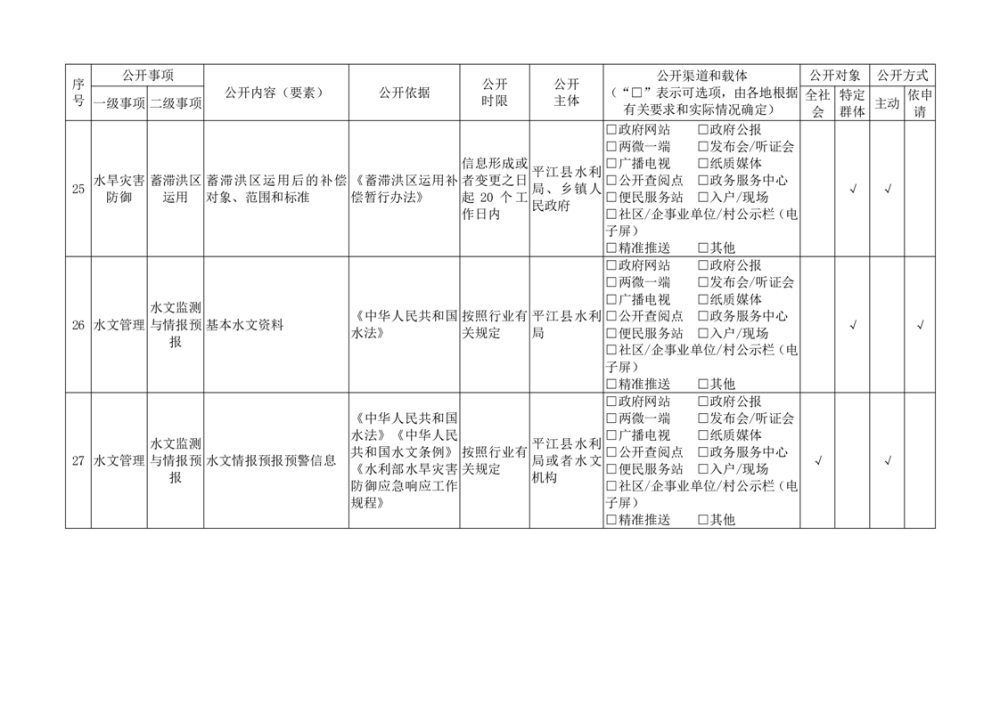 平江县水利领域基层华体会百度 标准目录